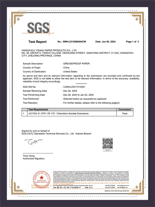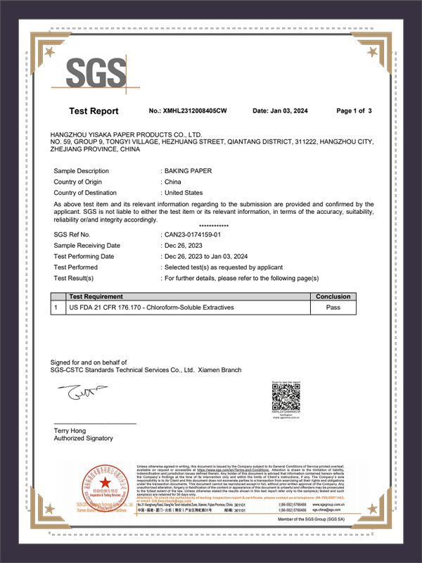 ดาวน์โหลดรายงานการทดสอบกระดาษเตาอบ SGS