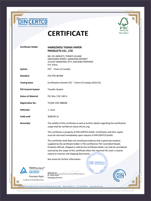 ใบรับรอง FSC-Certificate-Hangzhouyisaka