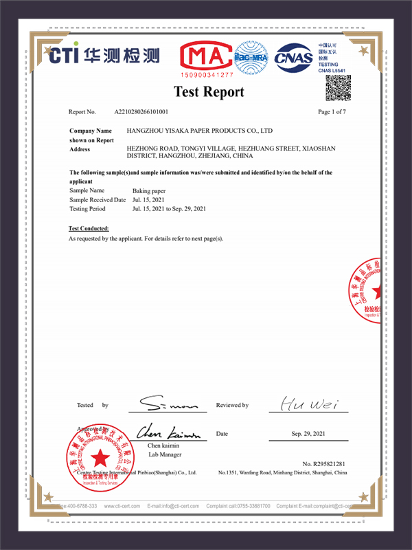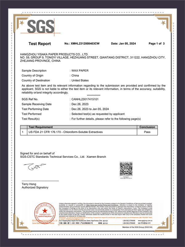 รายงานการทดสอบกระดาษขี้ผึ้ง SGS